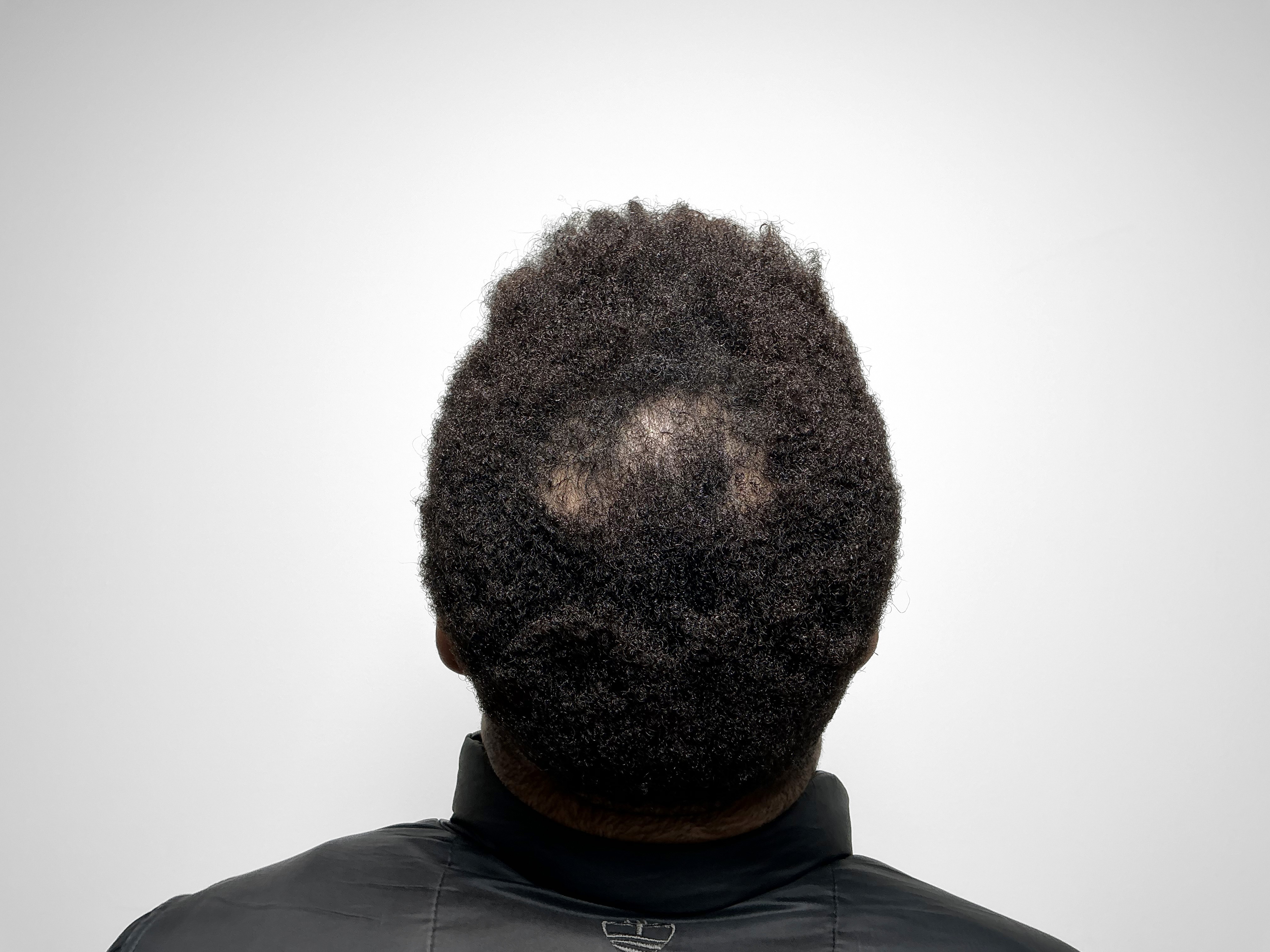 Third round of treatments. Transplanted and native hair are growing together into uniform, natural coverage. Progress photos document the improvement. Long-term maintenance plan set.